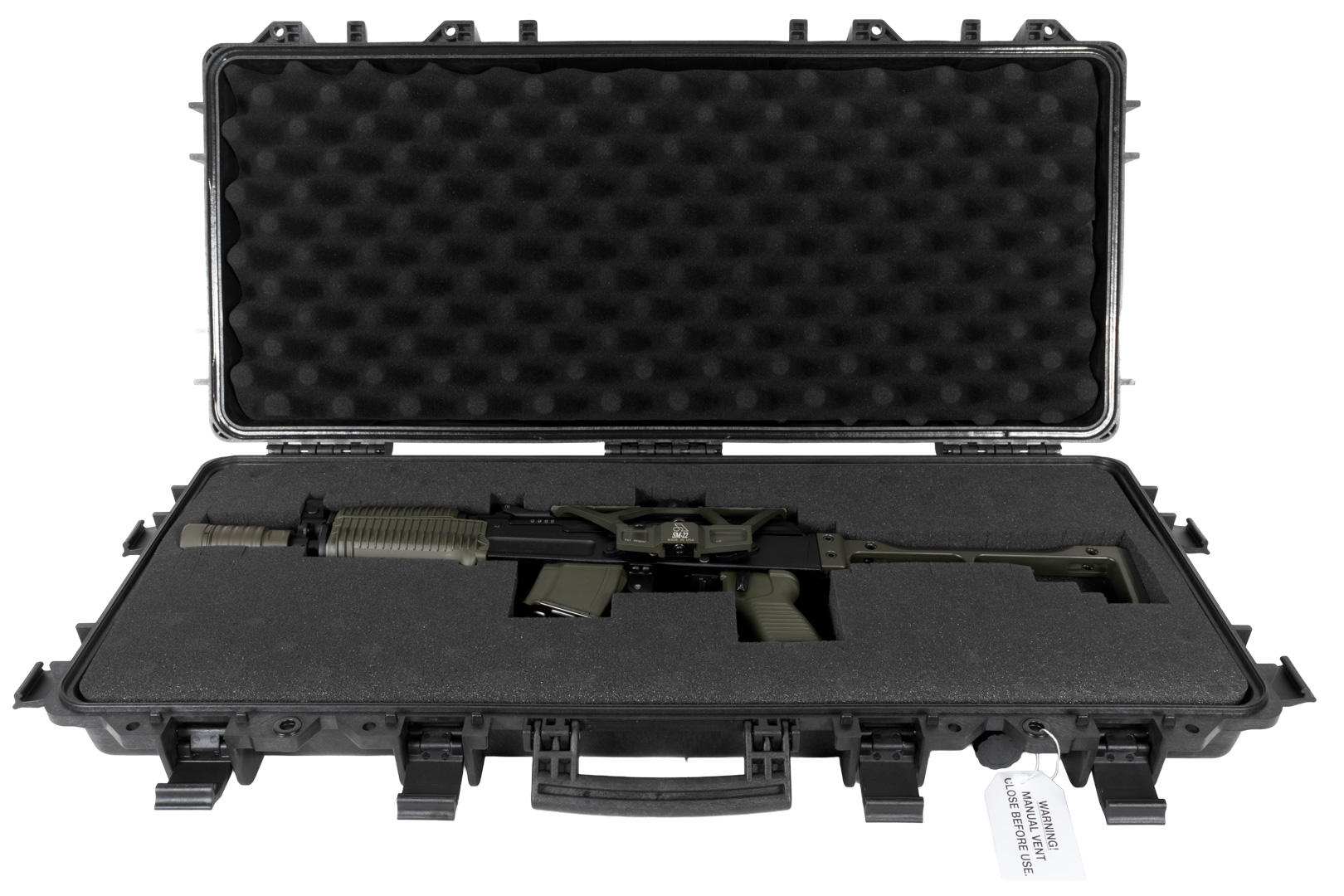 Our gun case features a manual pressure release valve designed for reliability in any environment. Unlike automatic valves, a manual system gives you full control, ensuring no unwanted air or water exchange occurs during transport or storage. This design makes it far more waterproof and secure compared to automatic valves, keeping your firearms protected even in extreme conditions. With the manual valve, you get durability and peace of mind that automatic systems simply can’t match.IP67 Water & Dust Resistant