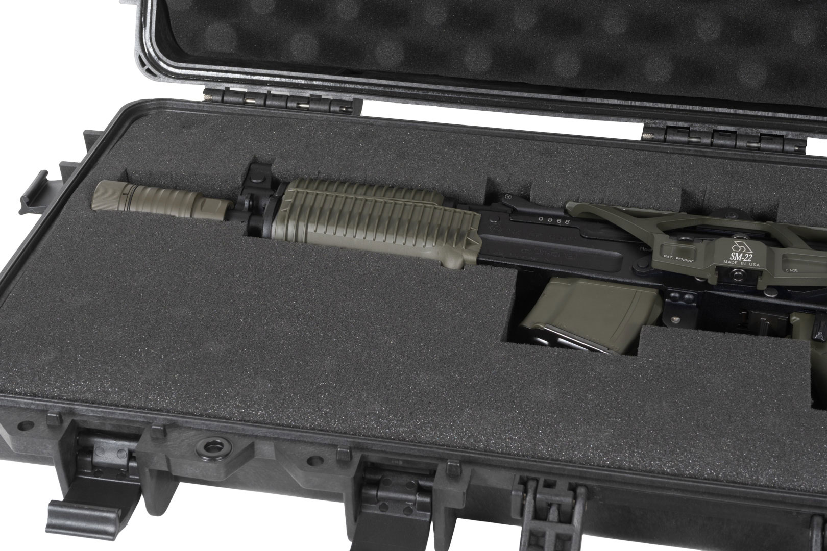 When the loadout changes, this hard gun case adapts. The Universal Edition uses pre-scored pick-and-pluck foam so you can create a custom fit for any rifle, handgun, optic, or gear. The crush-resistant shell, IP67-rated seal, and pressure valve defend against dust, impact, and full water submersion. Metal-reinforced mil-spec QD points make tactical carry easy through rain, rivers, and rough terrain. For teams and armories, the stackable geometry, per military requirements, lets cases secure for transport by truck or cargo aircraft. A compact footprint, tactical utility, and Limited Lifetime Warranty make it the versatile gun case that goes anywhere.